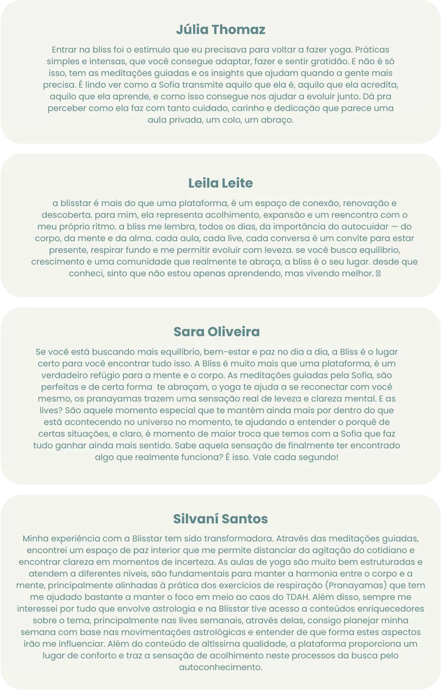 A plataforma Blisstar não possui fidelidade. Sendo assim, você pode cancelar sua assinatura no momento que desejar, e se no futuro quiser voltar, ficaremos muito felizes em te receber de volta.